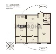 Предчистовая отделка. Общая площадь квартиры 65,57 кв.м. 13 этаж.