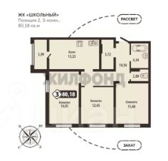 Предчистовая отделка. Общая площадь квартиры 80,18 кв.м. 6 этаж.