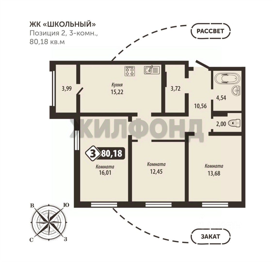 Предчистовая отделка. Общая площадь квартиры 80,18 кв.м. 15 этаж.
