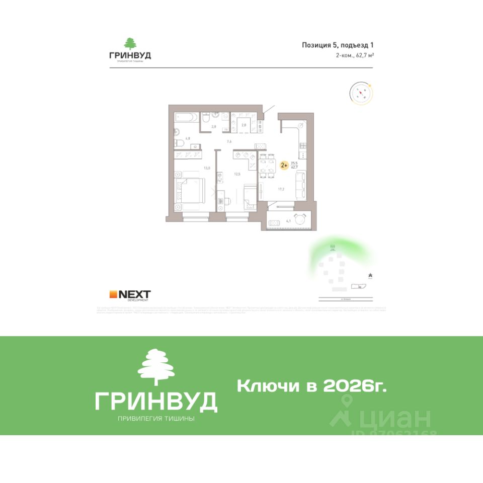 Клубный квартал "Гринвуд", позиция 5. Старт продаж нового дома! Квартиры на стадии котлована. ЖК занял 1 место в номинации "Лучший жилой-комплекс в ЦФО"* в 2025 году. Приоритет жизни в Клубном квартале "Гринвуд" — близость к живописной роще "Соловьи" и возможность наслаждаться уединением и тишиной на своей территории. "Гринвуд" гордится своей локацией: удобный и быстрый выезд в соседние районы города; в пешей доступности Курган, Центральный парк культуры и отдыха, добраться на машине за 5 минут можно до ТРЦ "Аэропарк", ТЦ "Европа" и Дворца единоборств им. Артёма Осипенко. Преимущества жизни в Клубном квартале "Гринвуд": - Самая низкая плотность застройки в городе. - Близость естественного природного массива — рощи "Соловьи" - Развитая инфраструктура. - Удобная транспортная доступность. - Кирпичные дома. - Панорамное остекление. - Авторские эргономичные планировки. - В квартирах предусмотрены кухни-гостиные, ниши для шкафов, гардеробные, мастер-спальни. - Потолки до 3 метров. Отделка White Box: - Выполнена полусухая стяжка с фиброволокном, на которую уже можно укладывать финишное покрытие (паркет, ламинат и т.д.) - Полностью установлена система отопления квартиры. - Все стены выровнены, загрунтованы и оштукатурены - Выровнены откосы - Выполнено панорамное остекление лоджии - Электрическая проводка разведена по комнатам - Установлена надежная металлическая входная дверь Территория: - Места для отдыха - Ландшафтное озеленение территории - Многоуровневое освещение Способы покупки: - рассрочка - ипотека - 100% оплата Планировки и подробности и условия уточняйте в офисе продаж: ПН - ПТ с 9:00 до 18:00 СБ с 9:00 до 16:00 или в сообщениях в любое время. Полное сопровождение сделки. Квартира предлагается от застройщика NEXT Development без комиссий! *ЖК занял 1 место в номинации "Лучший жилой-комплекс-новостройка в ЦФО, среднеэтажные дома" в премии ТОП ЖК-2025.