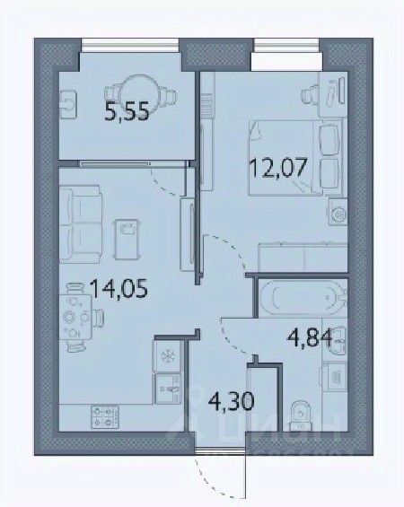 Большая кухня-гостиная и отдельная спальня;
