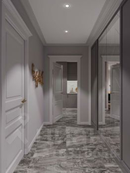 - Современный дизайн мест общего пользования: плитка Kerama Marazzi, потолки "Грильято"