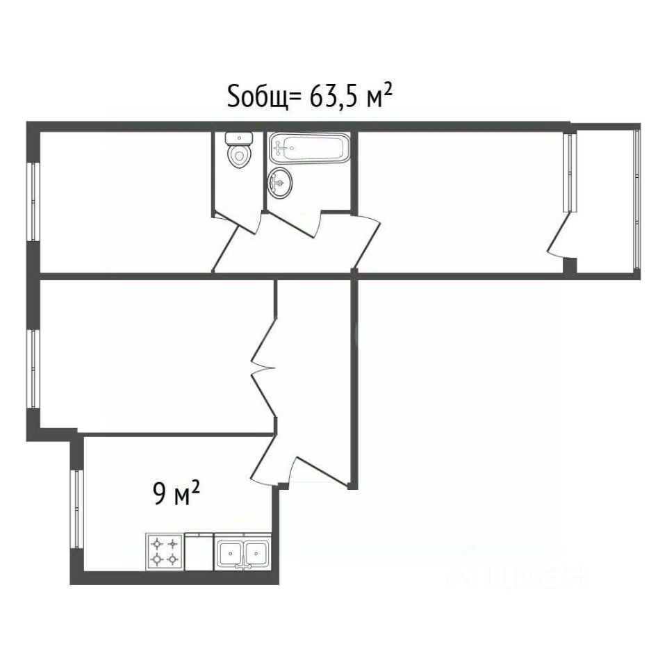 63,5 м²