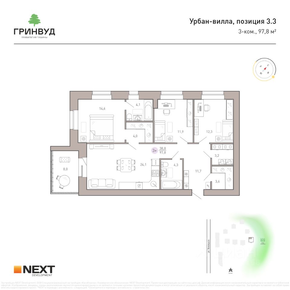 Полное сопровождение сделки. Квартира предлагается от застройщика NEXT Development, без комиссий!