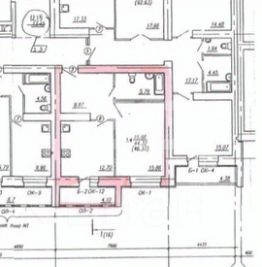 Общая площадь квартиры составляет 46,4 кв. м, кухня 14 кв. м. Квартира расположена на 2-м этаже 17-этажного дома, окна выходят на улицу. Высота потолков 2.75 метра.