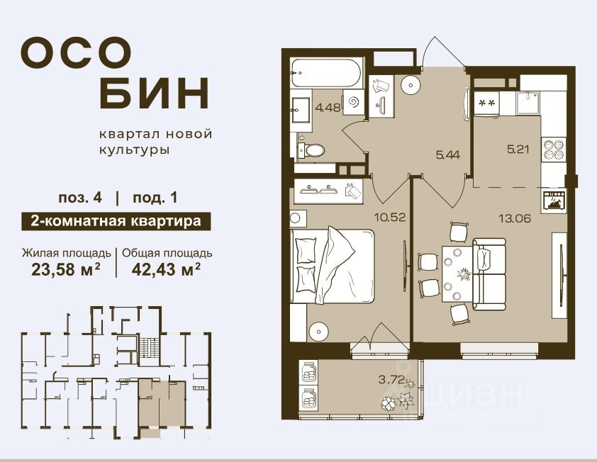 Общая площадь42,43 м²