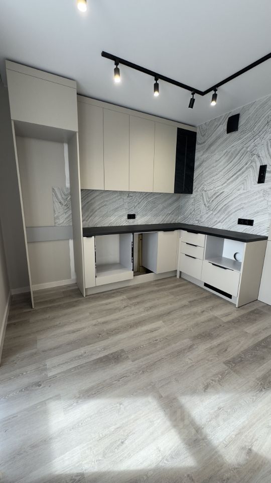 Выполнены электромонтажные работы по плану расположения розеток( выключателей) и осветительного оборудования. Демонтировано ограждение на лоджии. Стены квартиры выровнены по маякам, слоями зашпатлеваны, зачищены, загрунтованы. Установлена кухня под встроенную технику, а так же выполнена установка вытяжек в сан.узле и на кухне. Проложена трасса под кондиционер. В ванной комнате предусмотрена ниша под установку стиральной машины. Установлен видеодомофон.