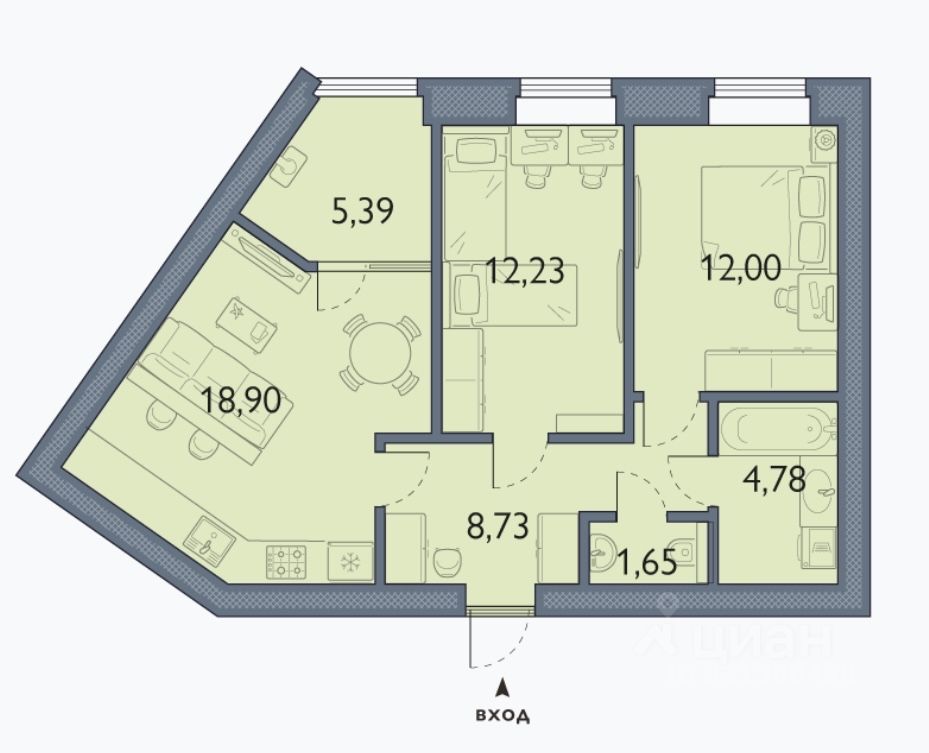Общая площадь63,68 м²
