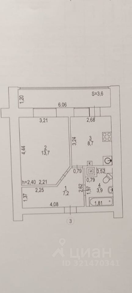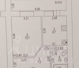 - Лоджия застеклённая, покрашена. 6.6 кв,м