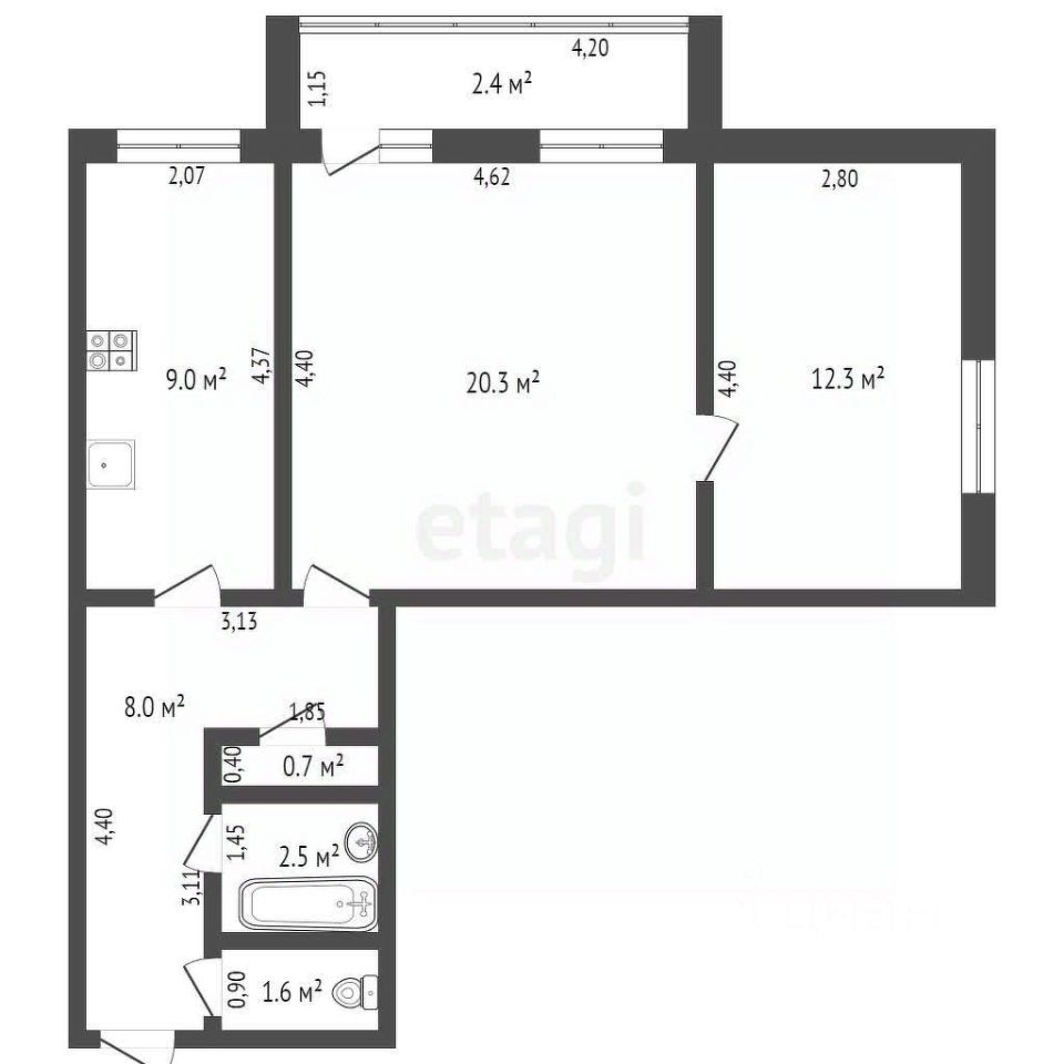 54,4 м²