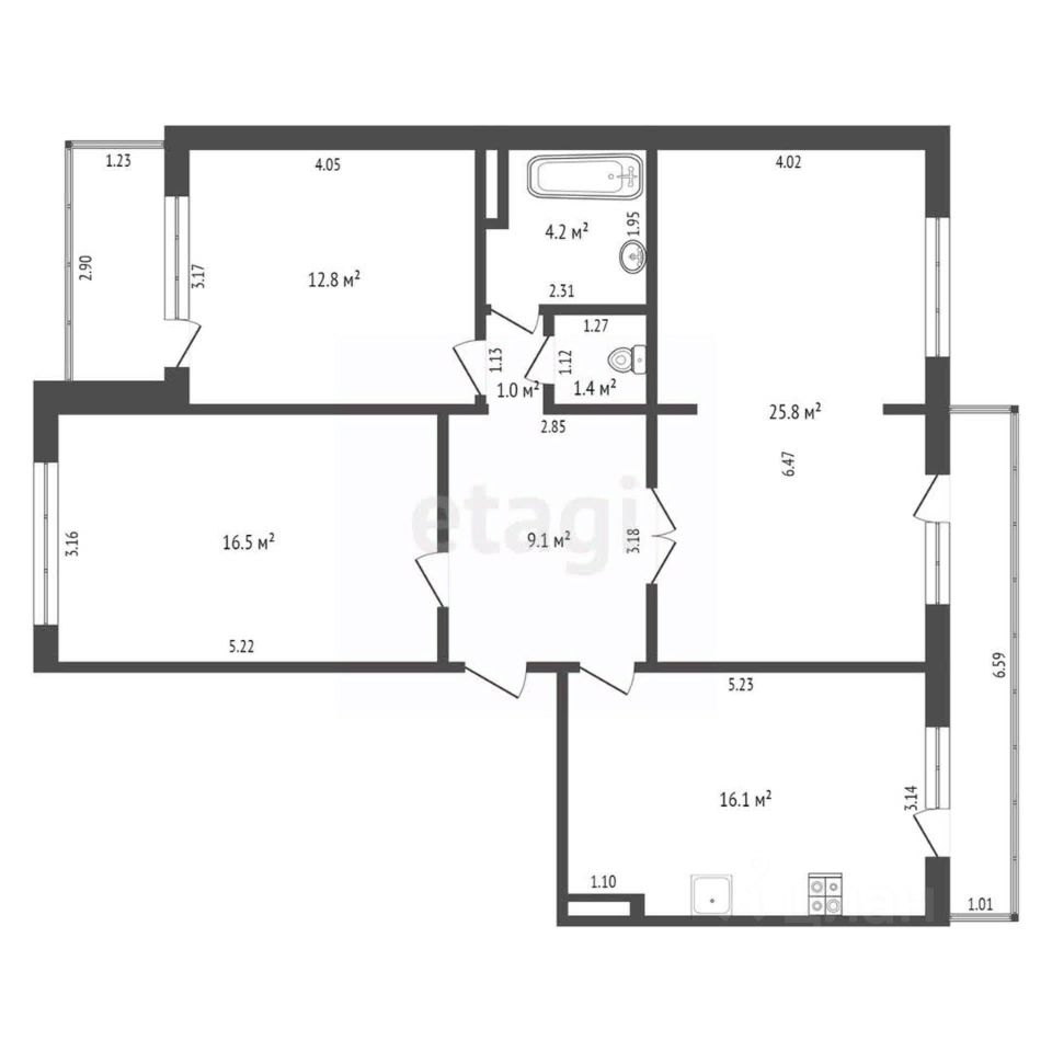 В квартире имеется раздельный санузел, что является большим плюсом для семейного проживания.