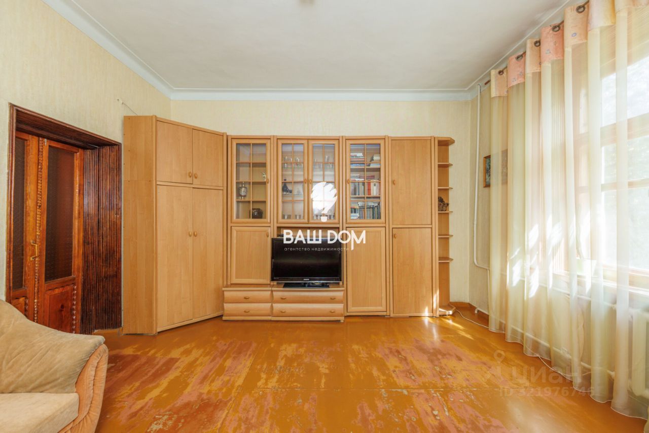 Квартира расположена на втором этаже четырехэтажного кирпичного дома 1938 года постройки. Дом имеет железобетонные перекрытия, центральное отопление. Окна выходят на улицу и во двор.