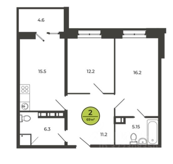 Площадь кухни15,5 м²