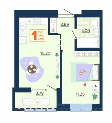Общая площадь37,03 м²
