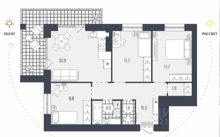 Площадь кухни30,9 м²