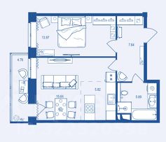 Общая площадь53,74 м²