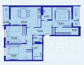 Площадь кухни20,6 м²