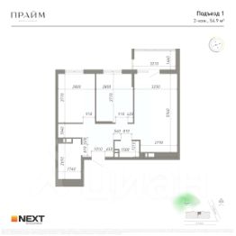 Общая площадь56,9 м²
