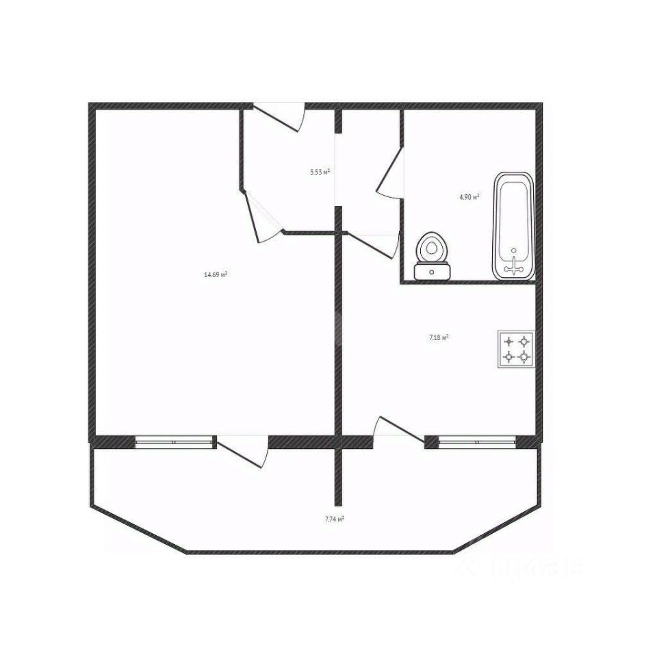 - Общая площадь: 33 м², жилая комната просторная и светлая.