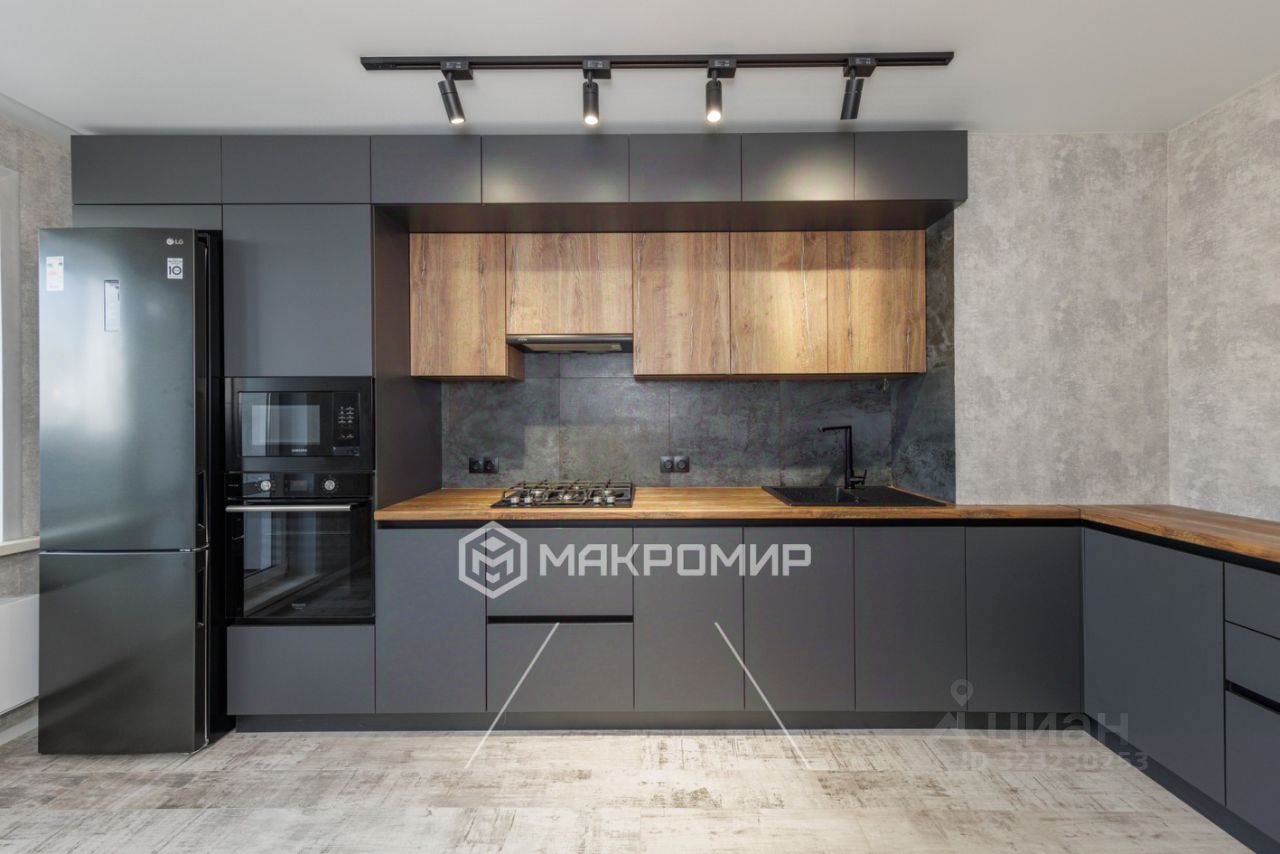 Полностью оборудованная кухня: холодильник, духовой шкаф, микроволновая печь, варочная панель, вытяжка