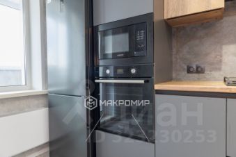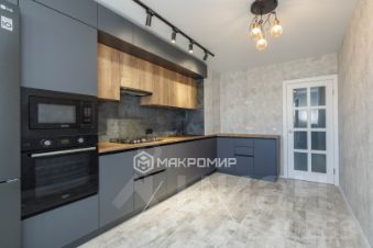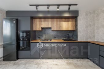 Просторная кухня с дизайнерским гарнитуром и встроенной техникой