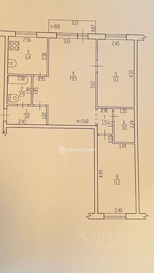 6,4 м²
