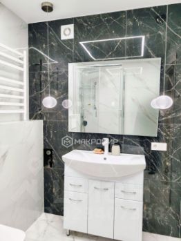 *   Просторный санузел с современным кафелем и свежим ремонтом.
