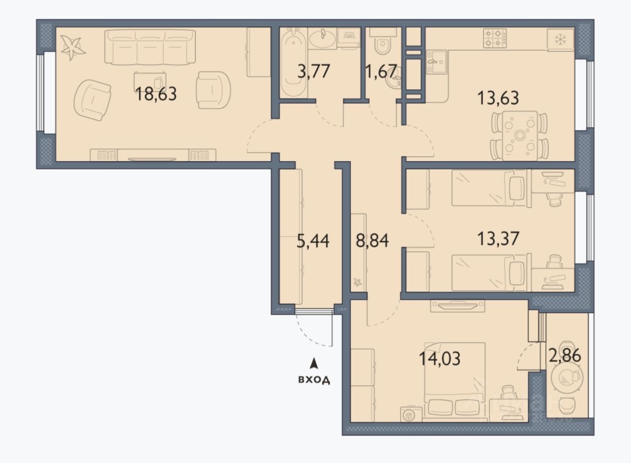 Площадь кухни13,6 м²