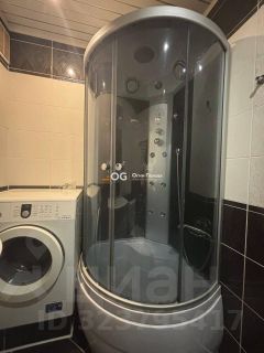 Санузел совмещенный, отделан плиткой, установлена душевая кабина.
