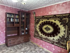 В квартире выполнен аккуратный ремонт в классическом стиле: тёплые розово-бордовые тона, текстурные обои, декоративный потолок с узором, ковёр на стене и мягкая мебель создают уютную атмосферу.