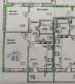 Параметры: Общая площадь - 62,9 м.кв., жилая площадь — 30 кв. м., площадь кухни — 12 кв. м.