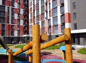 - Комплекс предусматривает детские площадки с разным игровым оснащением: площадки для самых маленьких с песочницей и качелями для малышей горки и игровые комплексы для деток постарше и спортивные площадки для командных игр детей подросткового возраста.