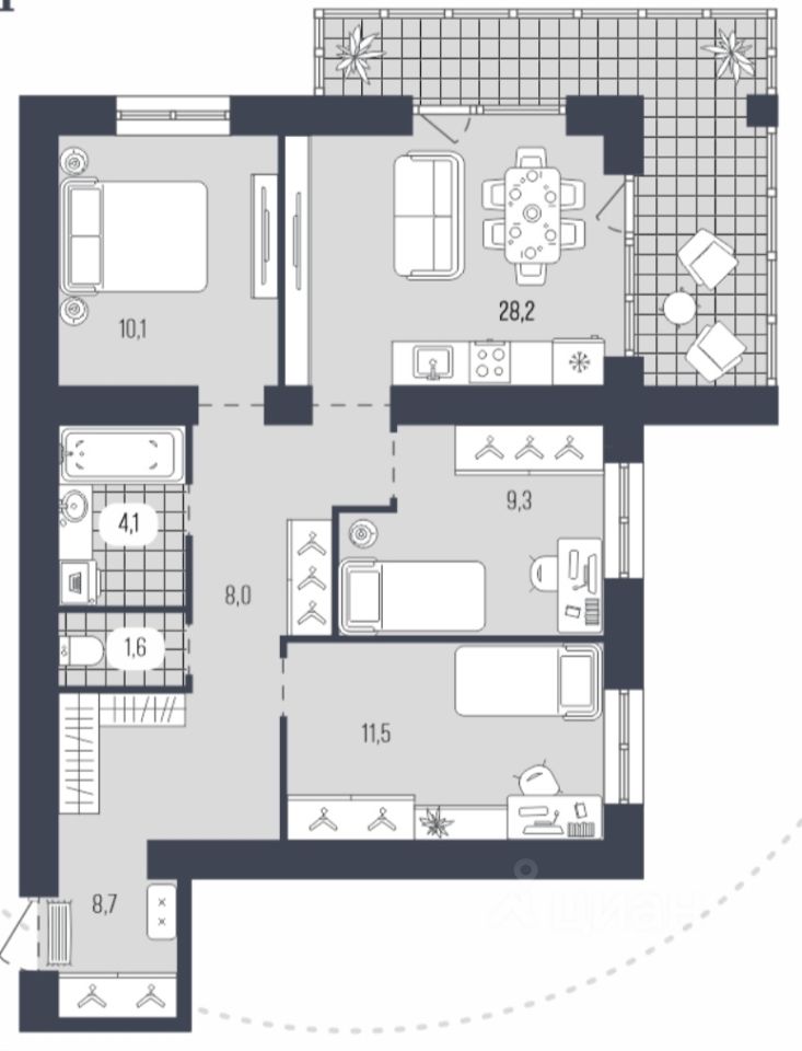 Площадь кухни28,2 м²