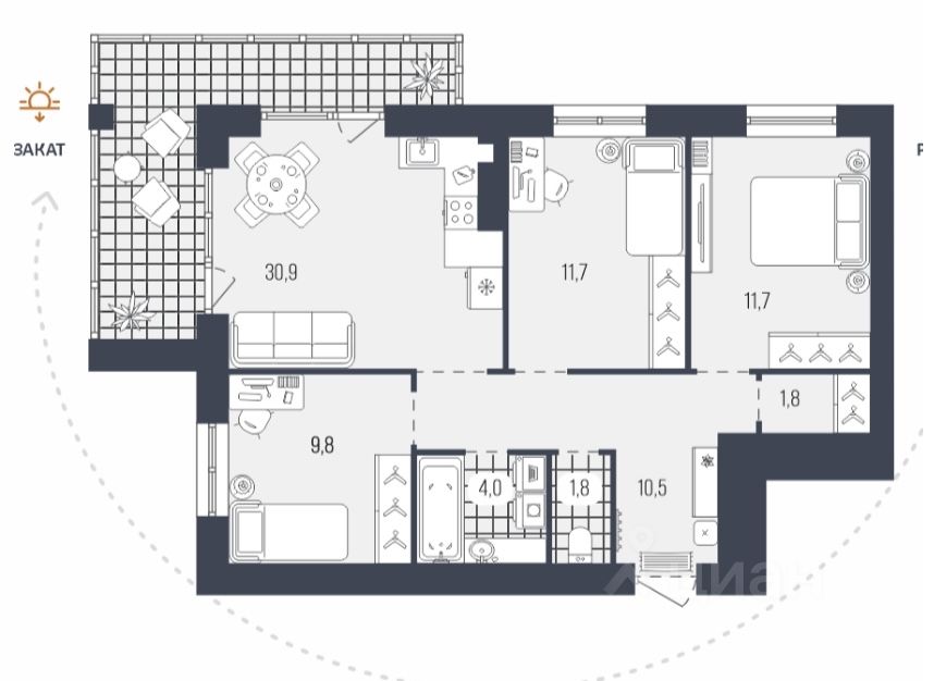 Площадь кухни30,9 м²