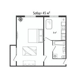 Ключевым преимуществом является нестандартная и просторная планировка: площадь жилой комнаты составляет 27 кв. м, что предоставляет возможность для ее функционального зонирования, например, под две отдельные спальни или организацию комфортной гостиной и рабочего кабинета.