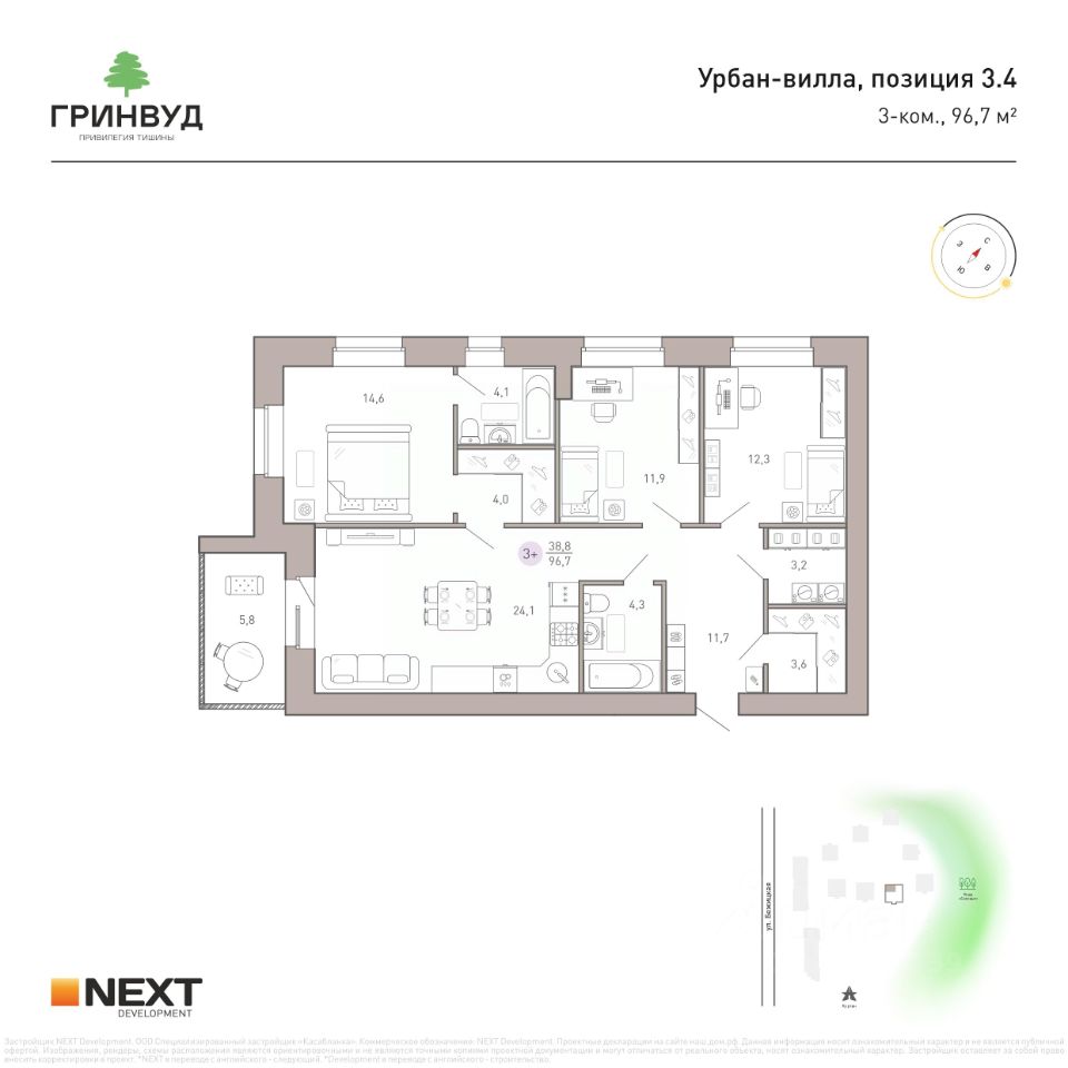 Урбан-виллы в клубном квартале "Гринвуд" Старт продаж! ЖК занял 1 место в номинации "Лучший жилой-комплекс в ЦФО"* в 2025 году. Урбан-виллы — решение для тех, кто хочет быть в центре городских событий и одновременно наслаждаться тишиной. 15 квартир в доме, 3 квартиры на этаже. Теперь не нужно ехать за город, чтобы почувствовать уединение с природой. "Гринвуд" гордится своей локацией: удобный и быстрый выезд в соседние районы города; в пешей доступности Курган, Центральный парк культуры и отдыха, добраться на машине за 5 минут можно до ТРЦ "Аэропарк", ТЦ "Европа" и Дворца единоборств им. Артёма Осипенко. Преимущества жизни в Клубном квартале "Гринвуд": - Самая низкая плотность застройки в городе. - 3 квартиры на этаже и всего 15 квартир в доме. - Близость естественного природного массива — рощи "Соловьи" - Развитая инфраструктура. - Удобная транспортная доступность. - Кирпичные дома. - Панорамное остекление. - Авторские эргономичные планировки. - В квартирах предусмотрены кухни-гостиные, ниши для шкафов, гардеробные, мастер-спальни. - Потолки 3 - 3,3 метров. Территория: - Места для отдыха - Ландшафтное озеленение территории - Многоуровневое освещение Способы покупки: - рассрочка - ипотека - 100% оплата Подробности и условия уточняйте в офисе продаж: ПН - ПТ с 9:00 до 18:00 СБ с 9:00 до 16:00 или в сообщениях в любое время. Полное сопровождение сделки. Квартира предлагается от застройщика NEXT Development, без комиссий! *ЖК занял 1 место в номинации "Лучший жилой-комплекс-новостройка в ЦФО, среднеэтажные дома" в премии ТОП ЖК-2025.