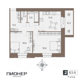 63,6 м²