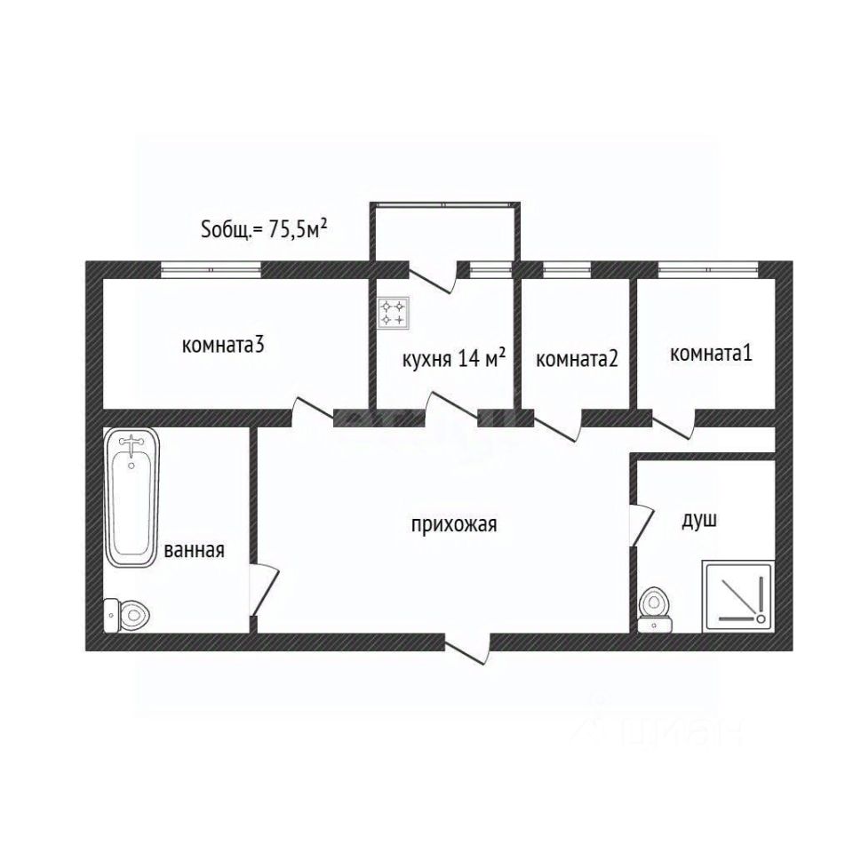 75,5 м²