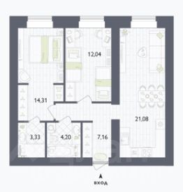 Продается 2-комн. квартира, 62,12 м²