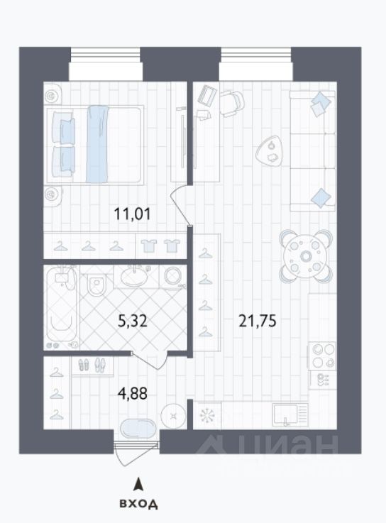 Общая площадь42,56 м²