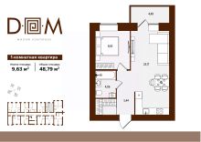 Продаётся 1-комнатная квартира в строящемся доме (поз.1), срок сдачи: IV-кв. 2027, общей площадью 48.79 кв.м., на 2 этаже. Новый жилой комплекс "Д.О.М." от застройщика "Надежда" расположен по адресу: г. Брянск, ул. Романа Брянского