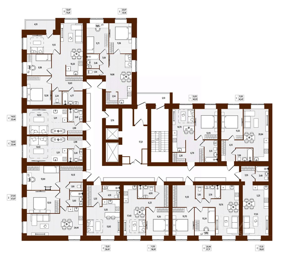 42,43 м²