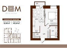 Продаётся 1-комнатная квартира в строящемся доме (поз.1), срок сдачи: IV-кв. 2027, общей площадью 43.24 кв.м., на 3 этаже. Новый жилой комплекс "Д.О.М." от застройщика "Надежда" расположен по адресу: г. Брянск, ул. Романа Брянского