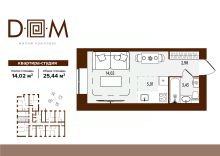 Продаётся студия в строящемся доме (поз.1), срок сдачи: IV-кв. 2027, общей площадью 25.44 кв.м., на 5 этаже. Новый жилой комплекс "Д.О.М." от застройщика "Надежда" расположен по адресу: г. Брянск, ул. Романа Брянского