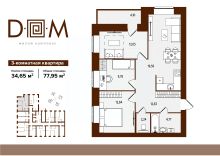 Продаётся 3-комнатная квартира в строящемся доме (поз.1), срок сдачи: IV-кв. 2027, общей площадью 77.95 кв.м., на 6 этаже. Новый жилой комплекс "Д.О.М." от застройщика "Надежда" расположен по адресу: г. Брянск, ул. Романа Брянского