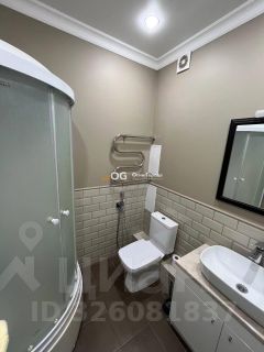 Санузел совмещенный, облицован современной плиткой, установлена душевая кабина.