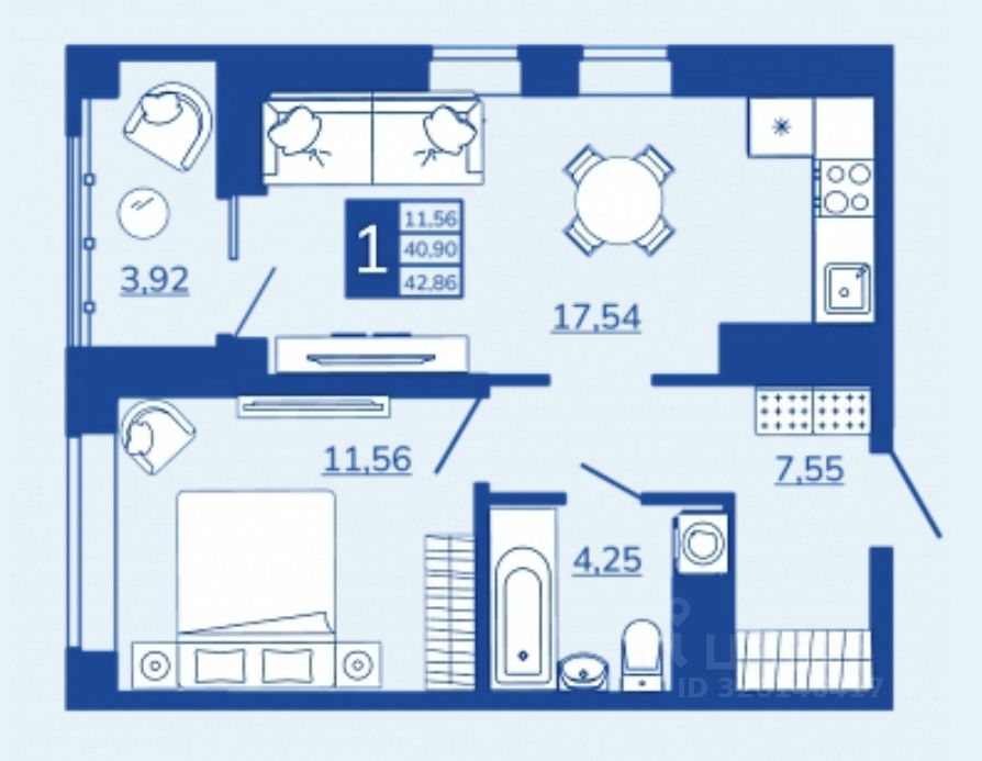 Общая площадь42,86 м²
