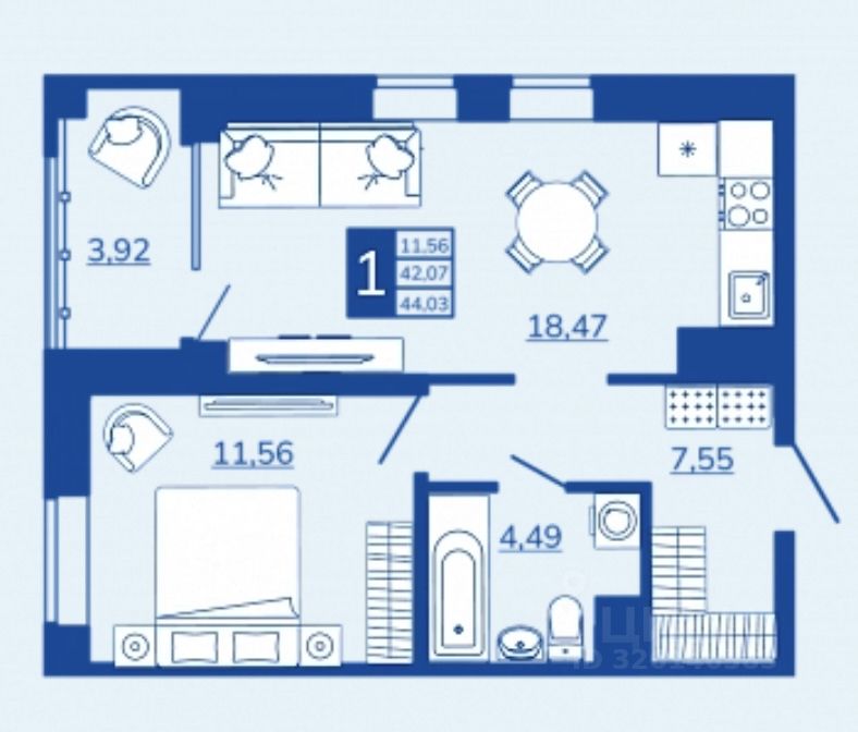 Общая площадь44,03 м²