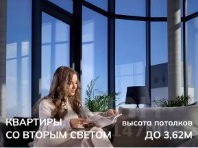 - Квартиры со вторым светом, высота потолков до 3,62 м;