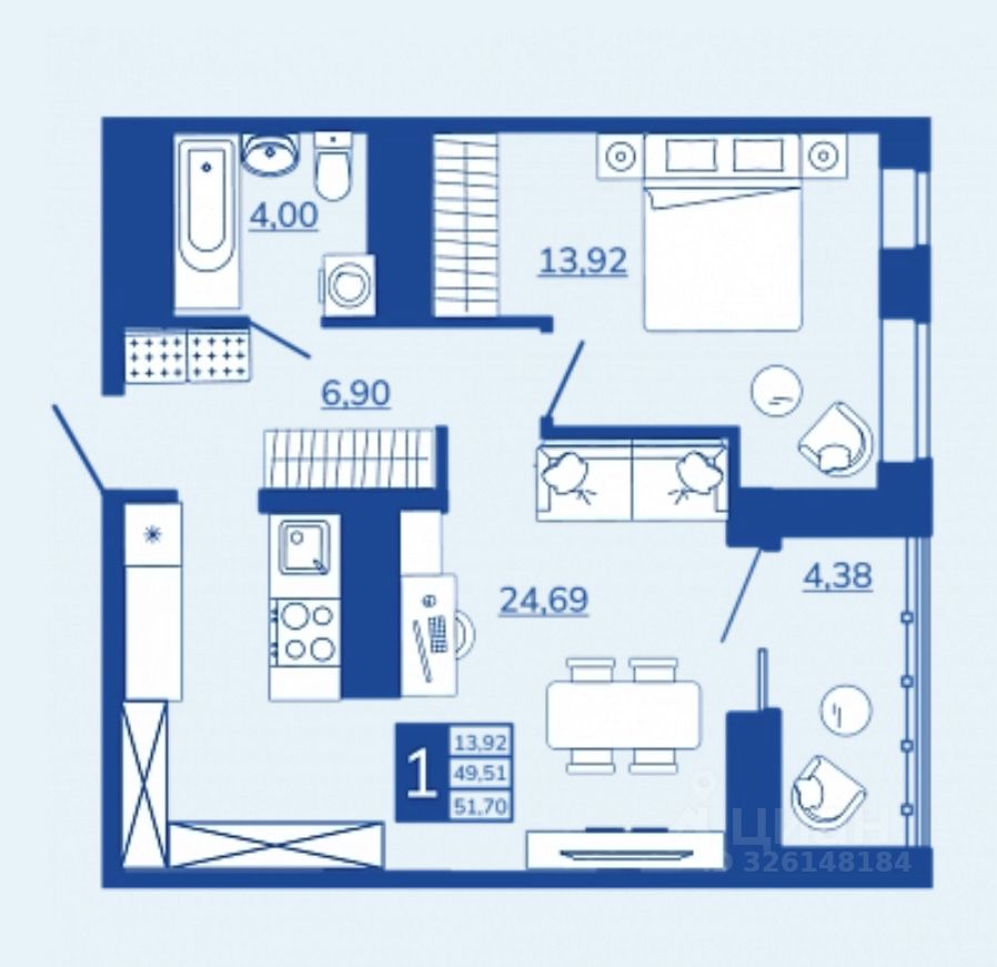 Общая площадь51,7 м²